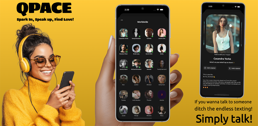Qpace isn't just another dating app. It’s where your voice leads the connection. Whether you're looking for friendship, dating, or just to talk — Qpace makes it real.